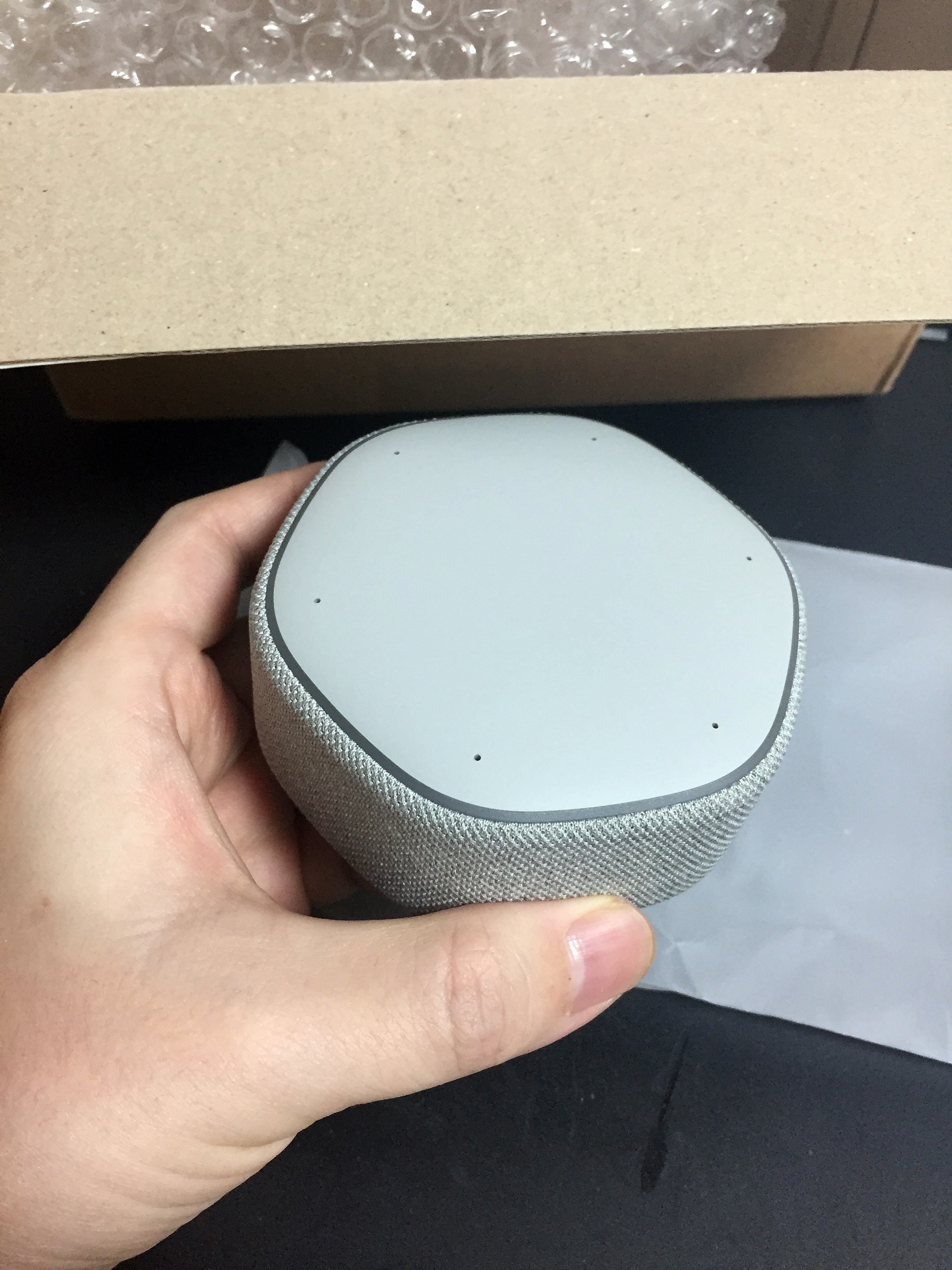 또한 카카오미니C에서 가장 아쉬웠던 스피커부분 마감 직물의 퀄리티가 좋아졌습니다.