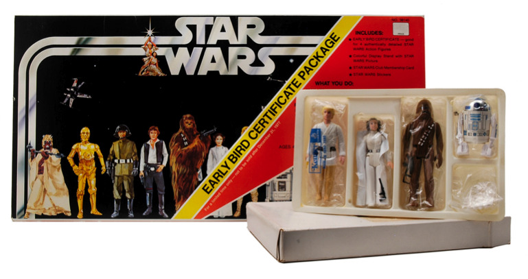 케너사는 4개의 스타워즈 액션 피규어로 교환할 수 있는 인증서를 판매함. (루크, 레아, 츄바카, R2-D2)