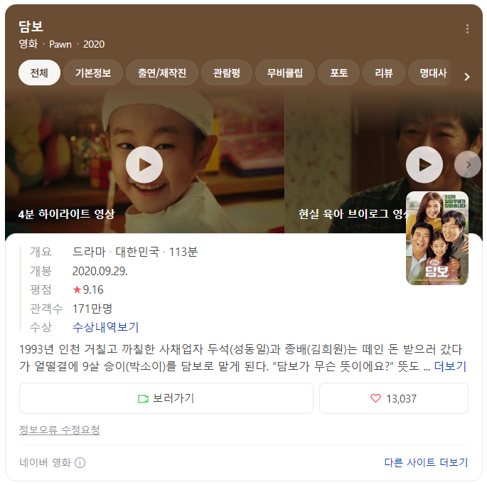 '네이버 평점 9점을 넘는 영화는 어떤 영화인지?' 궁금해 보았다.