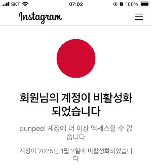 2025년 1월 2일 이유없이 인스타그램 계정이 영구정지 되었다.