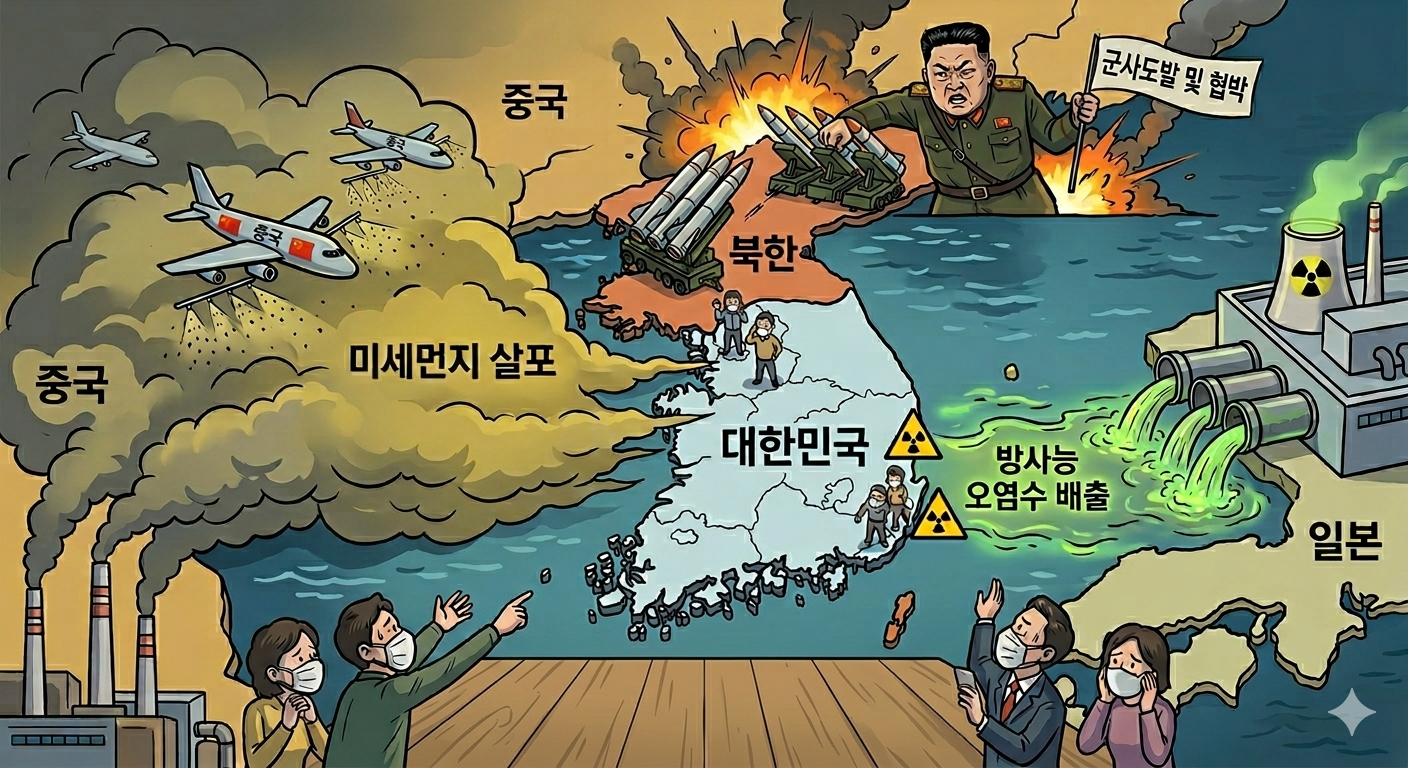 한새끼(중국)는 하늘로 중금속을 살포해.